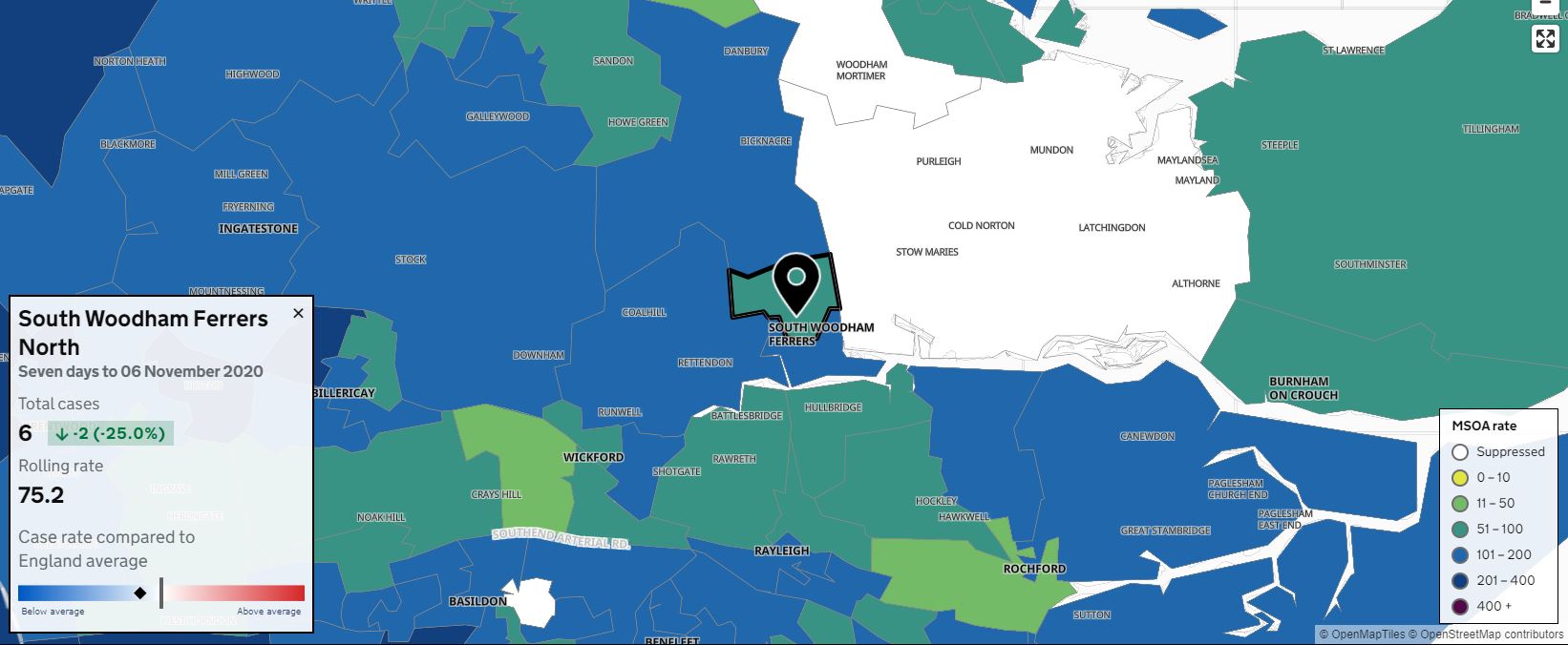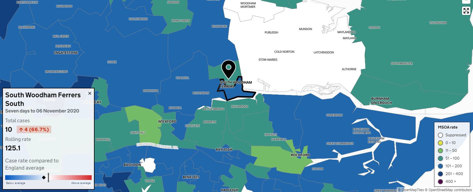 A weekly round-up of the latest available COVID-19 data for South Woodham Ferrers and Essex is below: