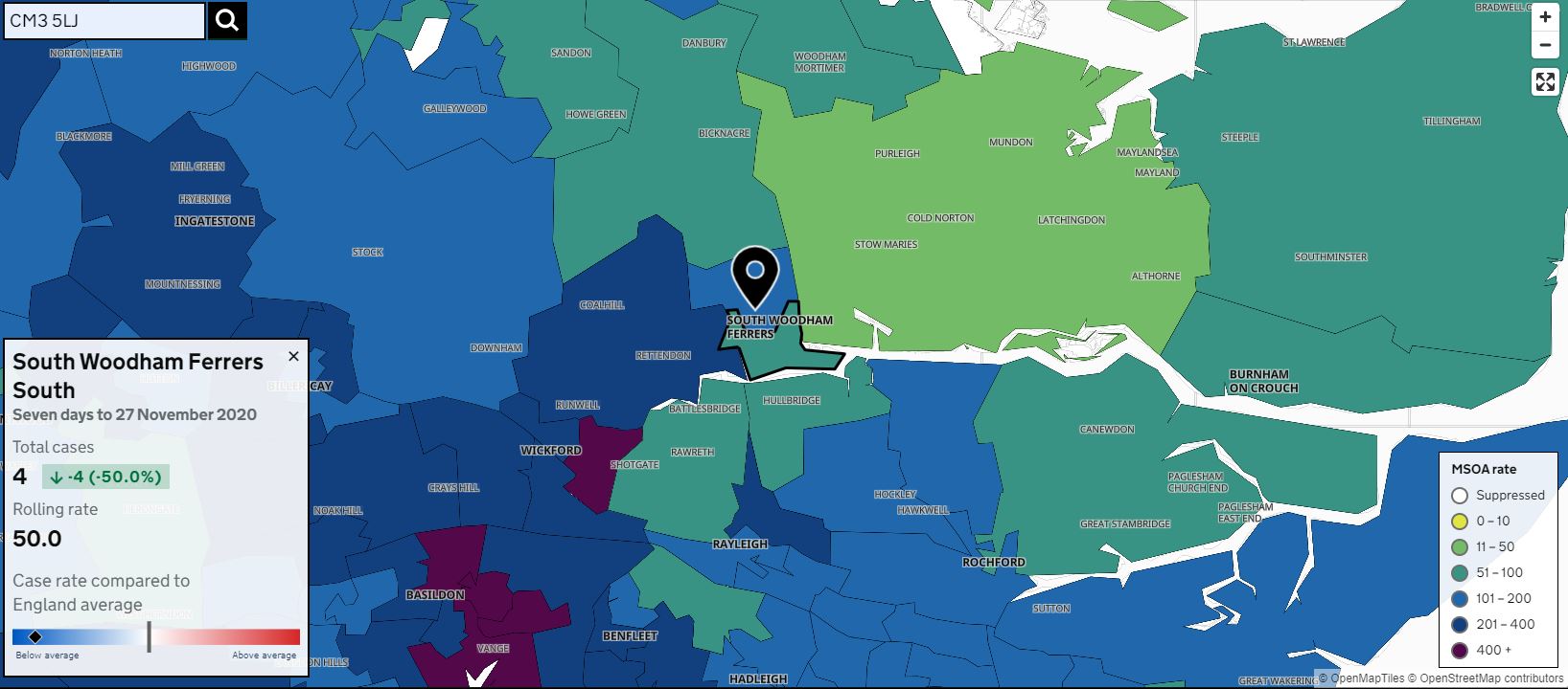 A weekly round-up of the latest available COVID-19 data for South Woodham Ferrers and Essex is below.