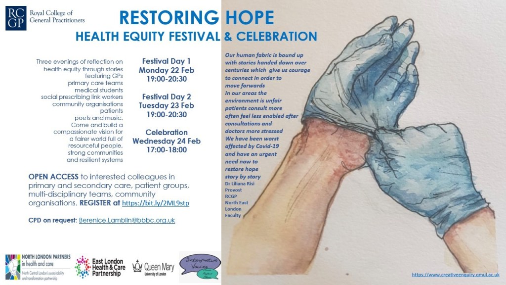 Restoring Hope, a Festival and Celebration of Health Equity Posted on 21st Feb 202121st Feb 2021 by swfhealthsocial Details on attached flyer, booking via this link https://bit.ly/2ML9stp Share this article: Share on Facebook (Opens in new window) Facebook Share on X (Opens in new window) X Share on WhatsApp (Opens in new window) WhatsApp More Print (Opens in new window) Print Email a link to a friend (Opens in new window) Email Share on LinkedIn (Opens in new window) LinkedIn Related