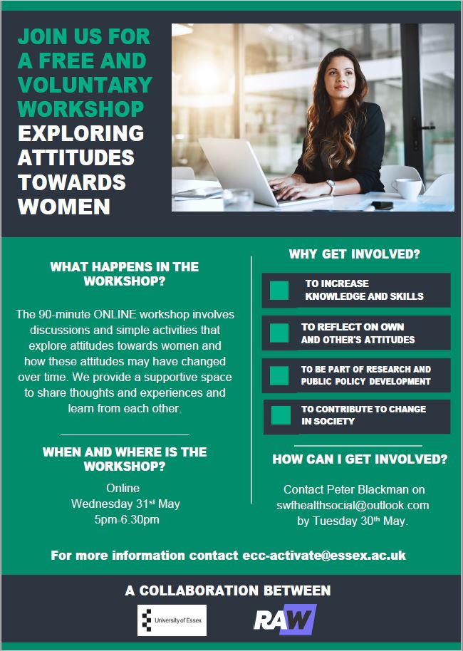 You are invited to attend a free online workshop for all adults over 18 from 5pm to 6.30pm on Wednesday 31 May 2023. This is part of an Essex County Council ongoing project which is explained on the attached flyer. Please register to attend by emailing our Administrator at swfhealthsocial@outlook.com and participants will be sent the necessary hyperlink. We look forward to a constructive discussion and contributing to this important subject and project.