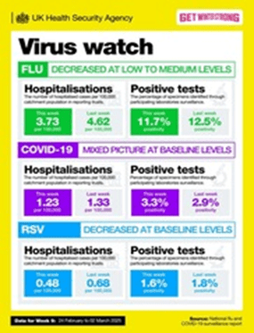 COVID-19, flu and RSV surveillance bulletin (formally Weekly Winter Briefing). Each week, this brings together the latest surveillance data, along with the latest public health advice for COVID-19, flu and RSV. In week 9: